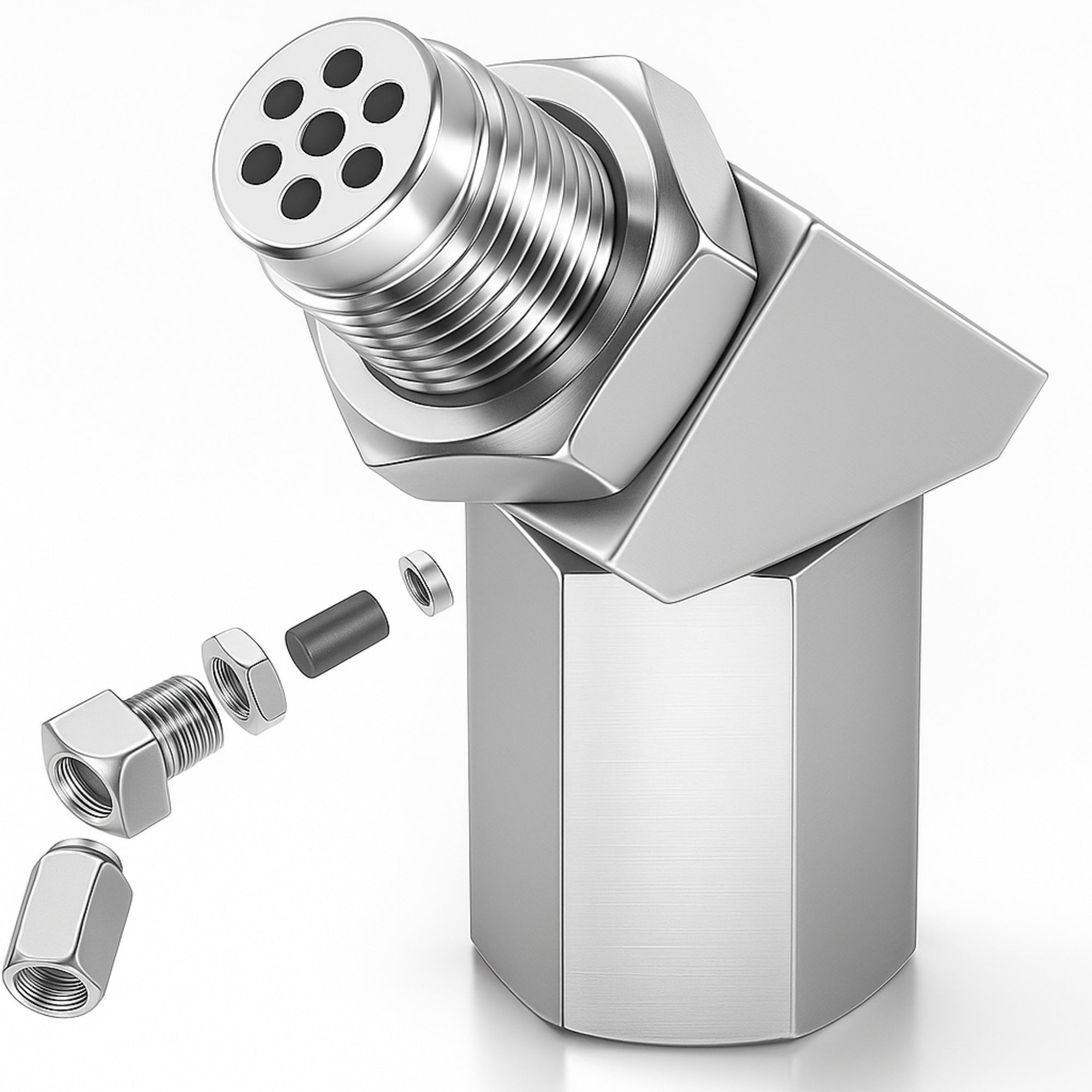 Our O2 sensor spacer is designed with a built-in mini catalytic converter that slightly shifts the downstream oxygen sensor away from direct exhaust gas flow. This spacer modifies the sensor’s readings by simulating catalytic activity, fooling the vehicle’s ECU into detecting normal catalytic converter function. As a result, it helps prevent false P0420 and P0430 trouble codes and keeps the Check Engine Light (CEL) off — without requiring ECU tuning or expensive catalytic converter replacement.